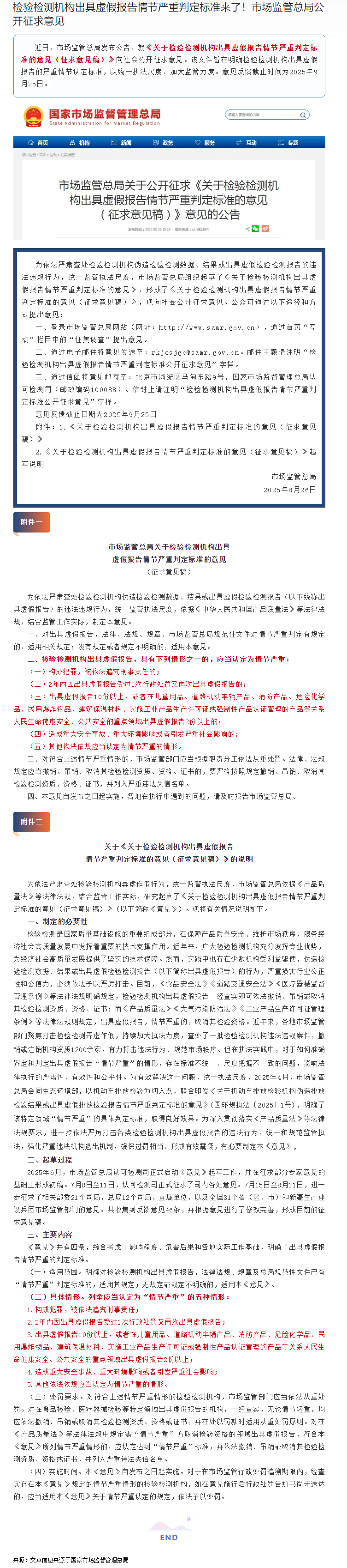 检验检测机构出具虚假报告情节严重判定标准来了!市场监管总局公开征求意见
